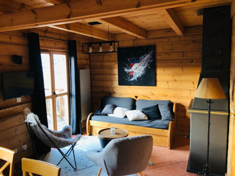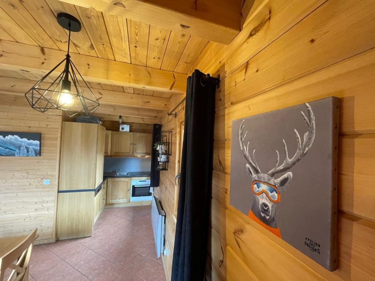 Un cálido chalet de madera maciza para alquilar en La Joue du Loup, idealmente situado en una zona tranquila de los Hauts de la Lauzière***, a 250 m del corazón de la estación, de los comercios y de los remontes.