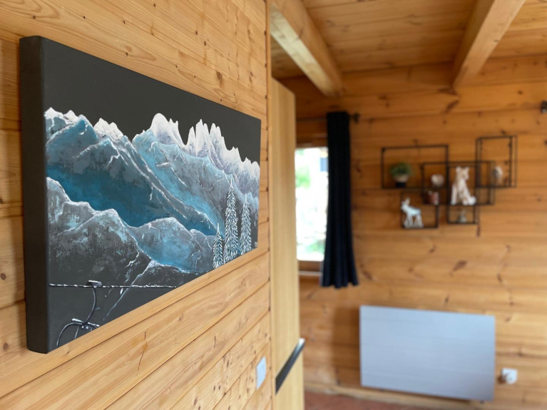 - Salón con vistas a la montaña, chimenea con inserción, sofá cama (2 camas), TV de pantalla plana.