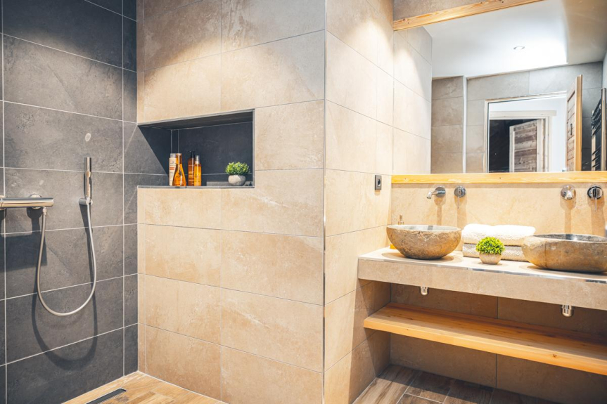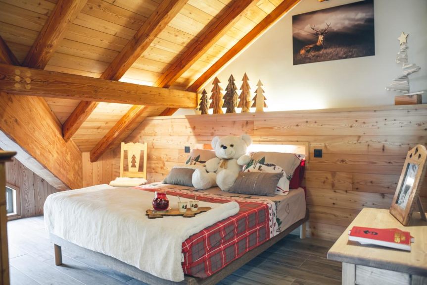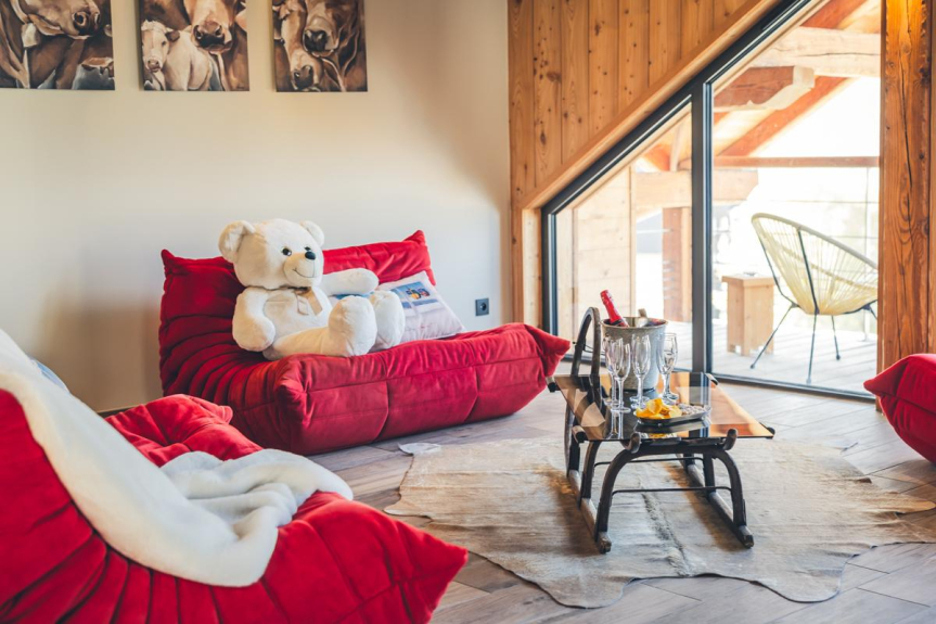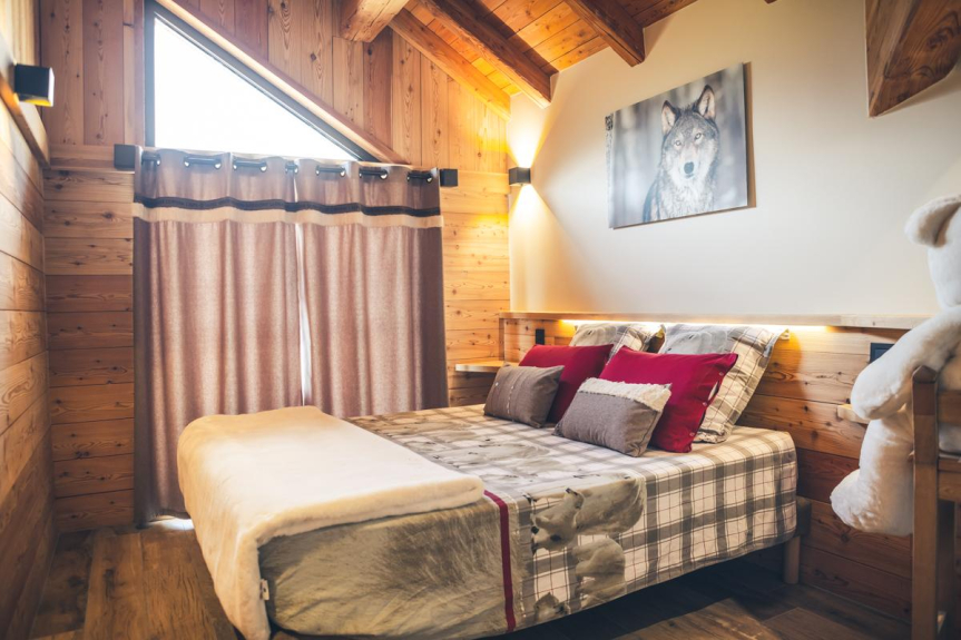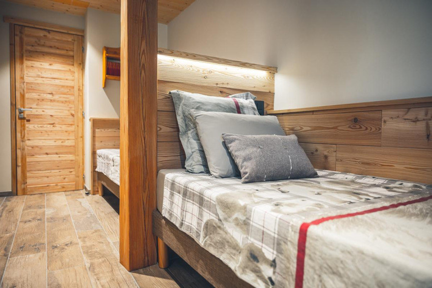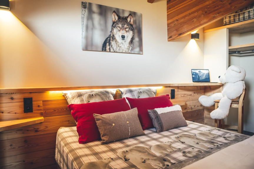 En un piso muy luminoso de 110m2, dispondrá de un salón de 55m2 con una cocina abierta y zona de comedor separada del salón por una chimenea de diseño de doble cara. Dos dormitorios principales y un dormitorio con dos camas individuales van acompañados de cuartos de ducha y aseos separados. Para completar el bienestar de sus vacaciones, las camas (de alta gama) están hechas a la llegada y se proporciona toda la ropa de casa. Una lavadora está a su disposición, así como un gran número de productos domésticos necesarios para su comodidad. Al día siguiente de su llegada se le ofrece un desayuno de bienvenida y un juego de cápsulas Dolce Gusto. También le ofrecemos un aparcamiento privado con retirada de nieve y un garaje con acceso directo a su piso para facilitar sus desplazamientos.