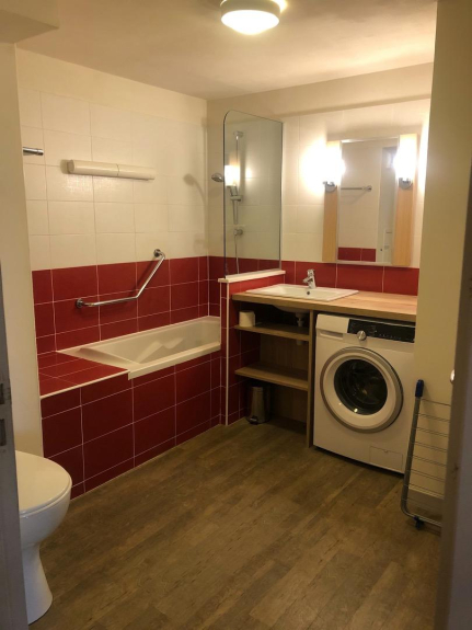 - sala de estar con cocina totalmente equipada (lavavajillas, horno combinado, cafetera...), mesa y silla, TV, altavoz bluetooth, sofá cama