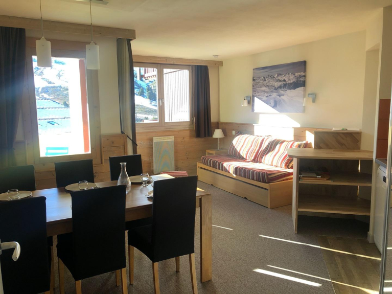 Piso para 7 personas en una residencia situada a pie de pistas en Belle Plagne, una estación peatonal en el corazón de Paradiski (uno de los mayores dominios esquiables del mundo).