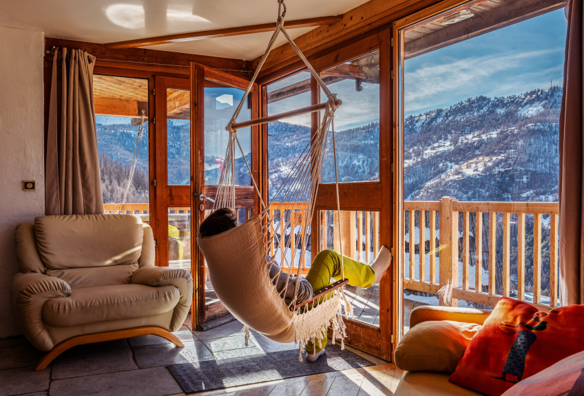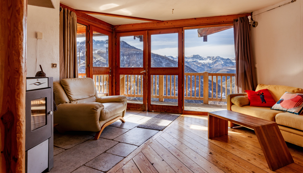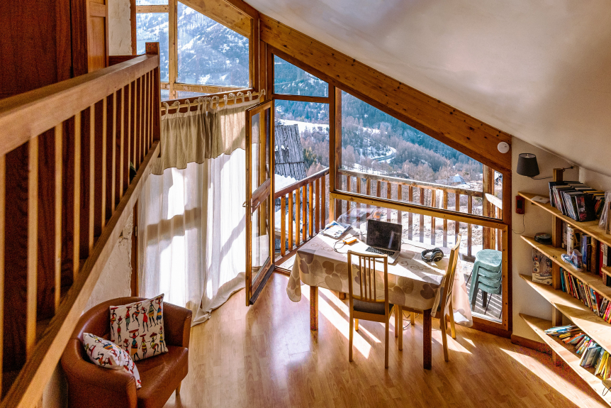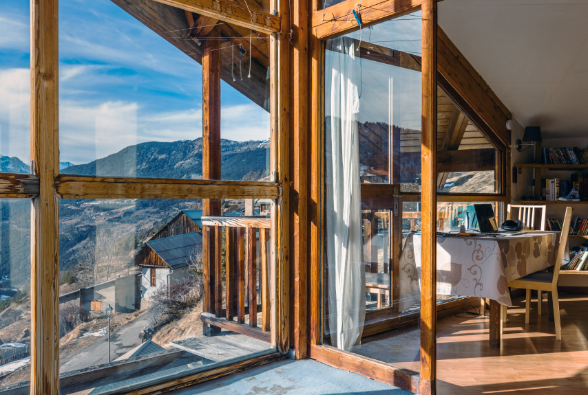 en un chalet panorámico con 20m2 de cristal, aldea tranquila, muy soleado, muy pocos coches