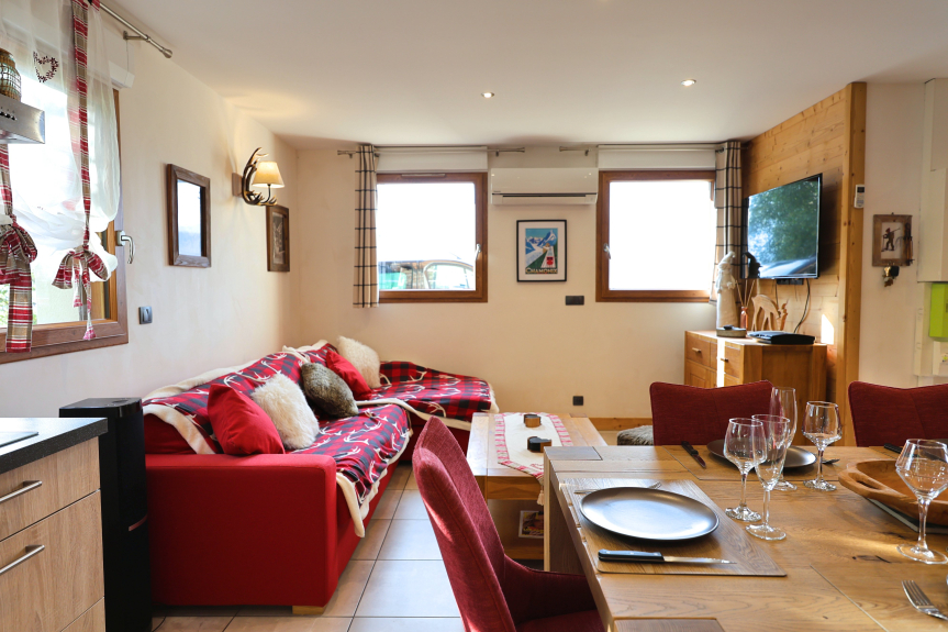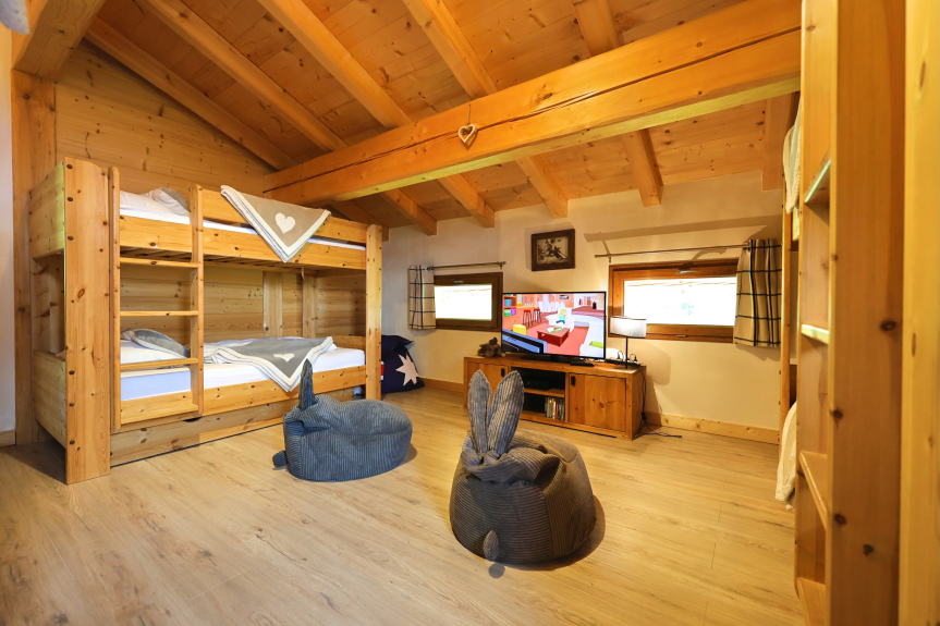 3 habitaciones dobles, 1 con TV de pantalla plana, 1 dormitorio con 3 literas con TV de pantalla plana y play station 3, 3 baños y 2 aseos independientes, sauna, wifi, balcón y terraza con vista panorámica de la cadena de Aravis.