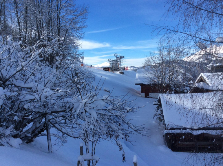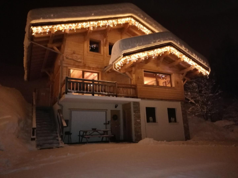 Nuestro espacioso y confortable chalet a pie de pistas** está a 40 m del remonte, con un autobús gratuito a 100 m para llevar a los niños al FSE que está a sólo 800 m del pueblo.