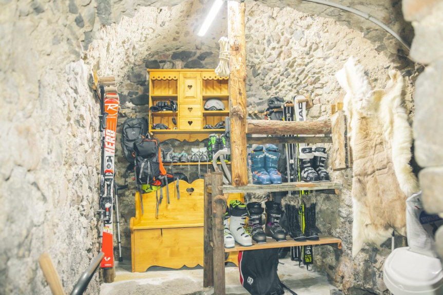 A la derecha de la entrada se encuentra una segunda sala de estar con un segundo televisor junto a un dormitorio con cama doble. En el hall de entrada, un aseo y una sala de esquí.