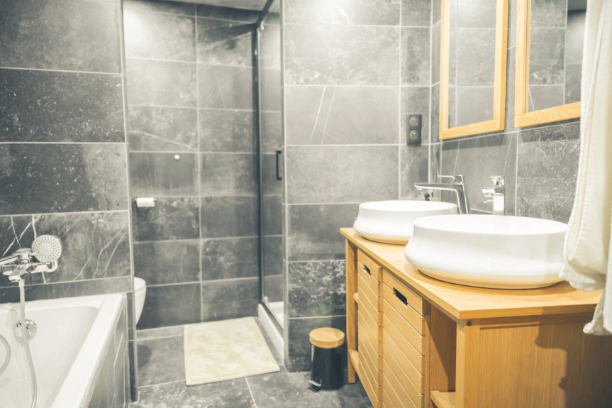 En la primera planta, un cuarto de baño dedicado al dormitorio de la planta baja y un dormitorio muy grande con dos pares de literas y dos camas individuales que se pueden colocar juntas. Un gran cuarto de baño con bañera, ducha y aseo se encuentra junto a esta habitación.