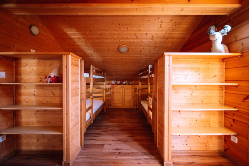 Dispone de 14 plazas (3 habitaciones con camas dobles y baño propio, incluida una bañera de hidromasaje - 2 habitaciones con 2 camas individuales y baño compartido, así como un dormitorio con 4 literas y baño propio).