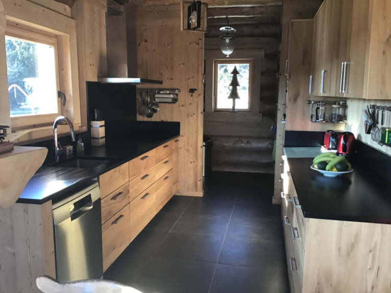 Nuestra cabaña de madera, terminada en julio de 2021, tiene una superficie de 140 m2 en una parcela de 460 m2 y está diseñada para 10 personas. Se encuentra a 900 metros de las pistas de esquí alpino y una ruta de senderismo a los pies del chalet conduce a la zona de esquí nórdico.