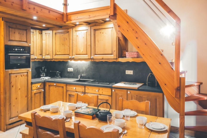 La gran cocina abierta, el balcón orientado al sur con vistas a la pista de Luc Alphand, el guardaesquís/bicicletas y el acceso gratuito a la piscina de la residencia (en temporada) garantizan unas vacaciones confortables.