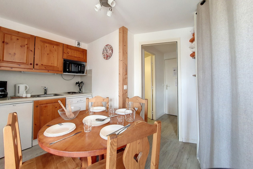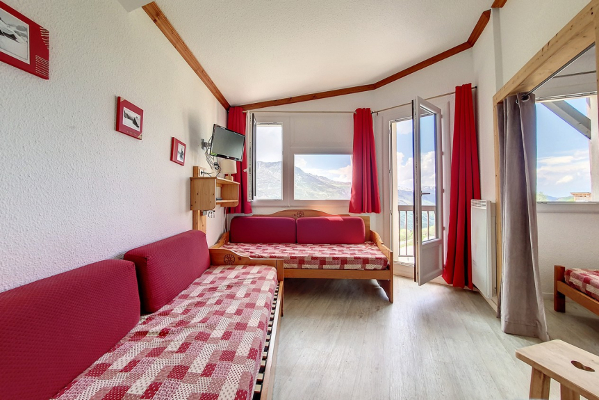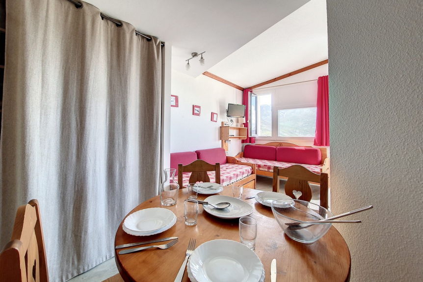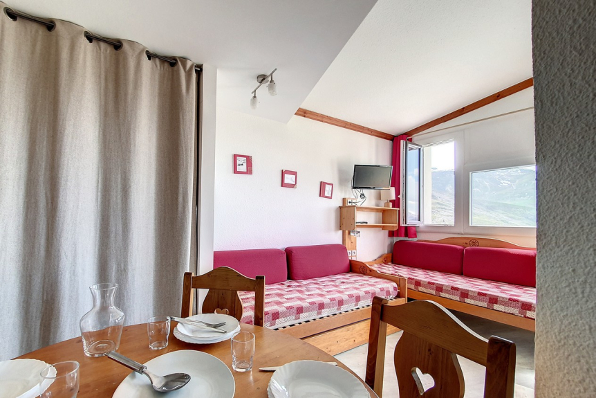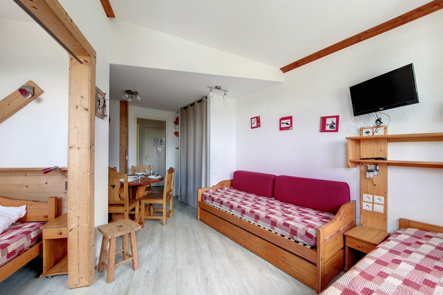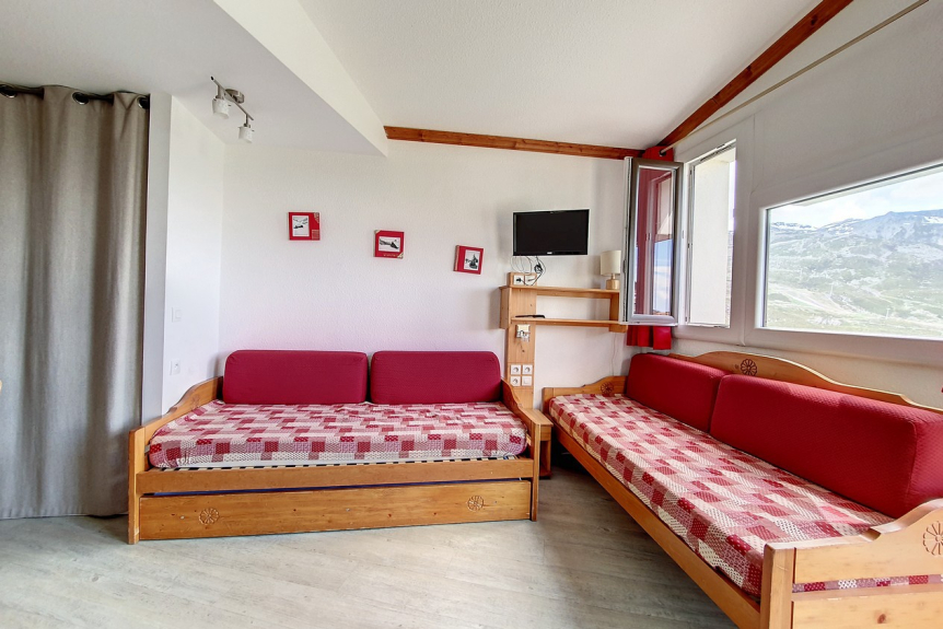 Estudio de 25 m² para 4 personas. Se encuentra en la 7ª planta y tiene un balcón orientado al oeste.