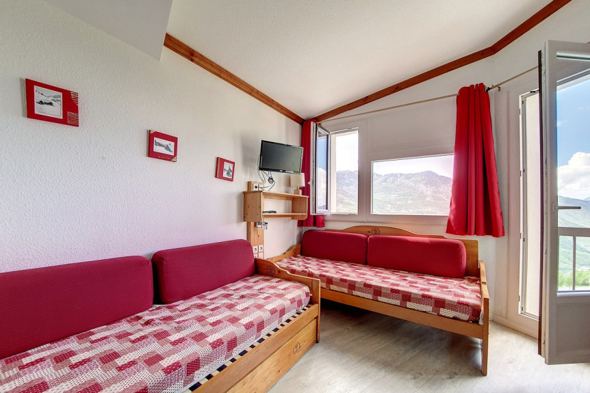 Sala de estar con ventana francesa que da al balcón: 2 camas individuales (no aptas para una cama doble). Equipado con un televisor.