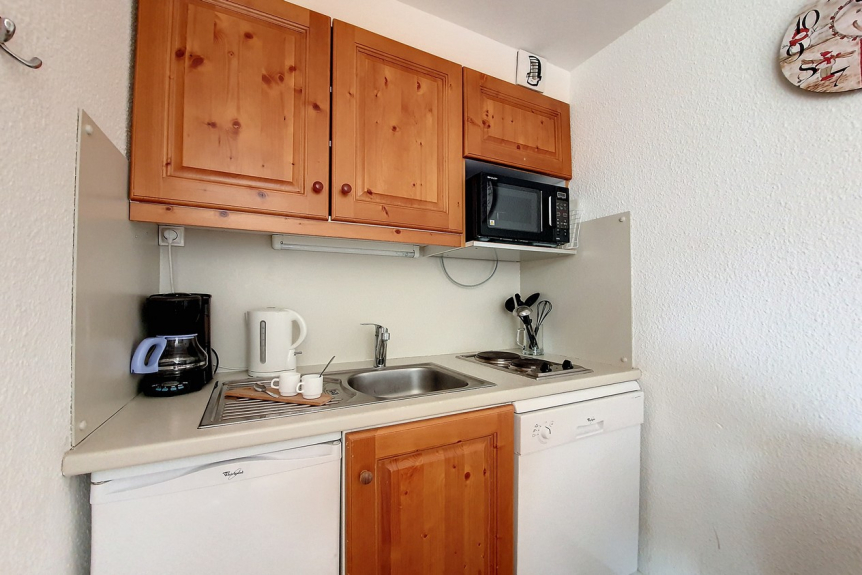 Cocina equipada: 2 placas eléctricas, nevera, microondas + grill, lavavajillas, tostadora, hervidor eléctrico y cafetera.