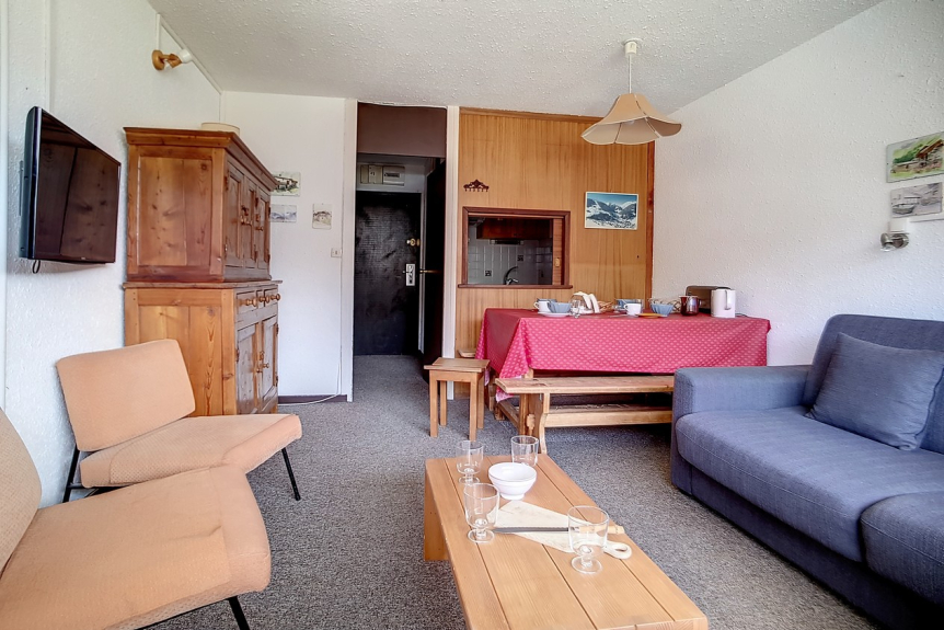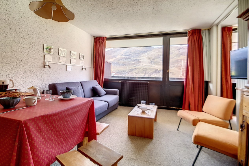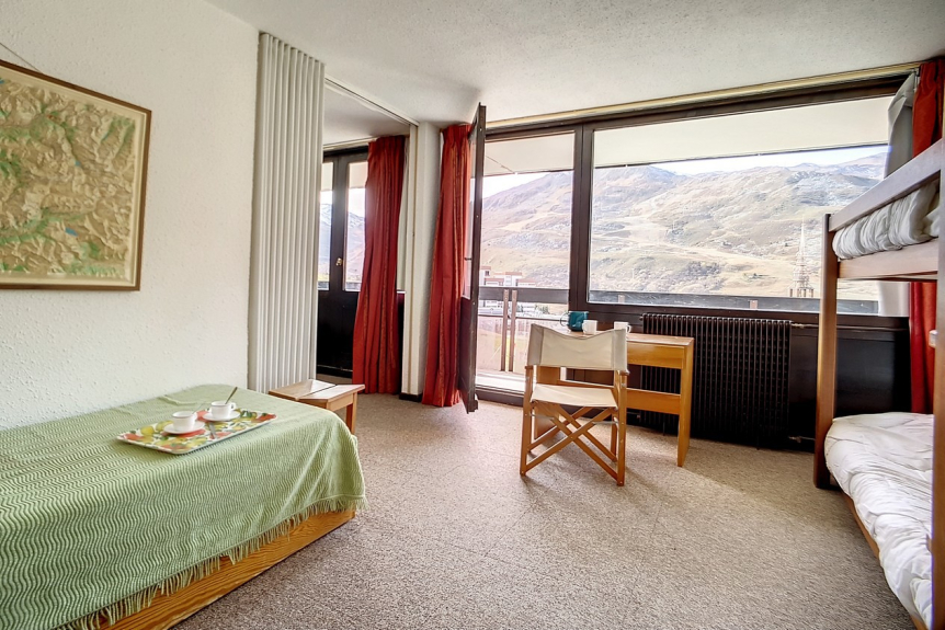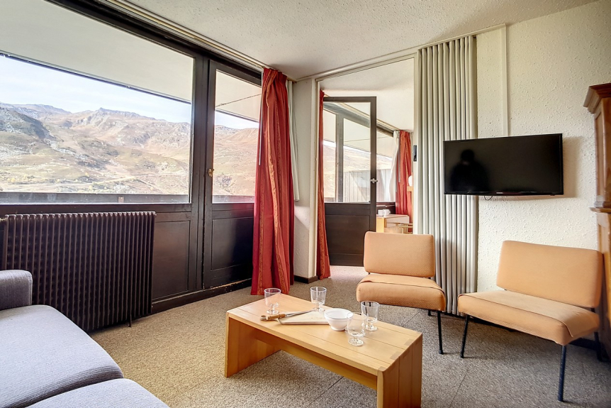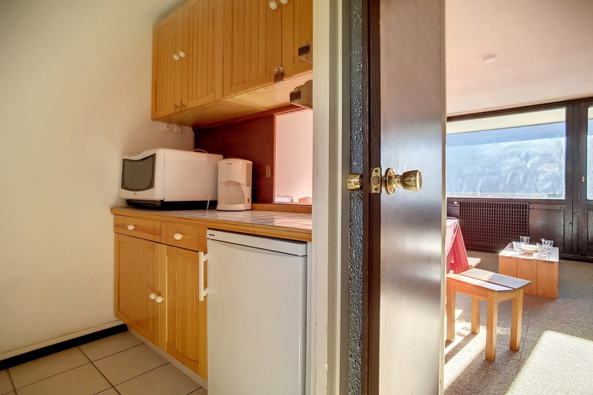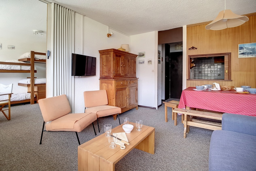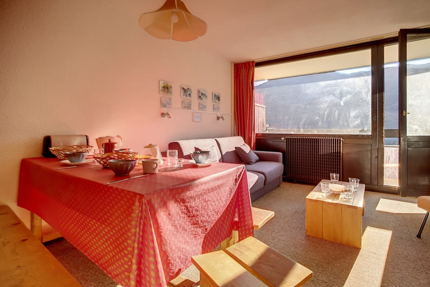 Se trata de un piso de 2 habitaciones con 1 dormitorio con una superficie total de 42m² para 6 personas. Se encuentra en la 6ª planta de una residencia de esquí, cerca de los remontes y del punto de salida de las FSE, y tiene un balcón orientado al sur.
