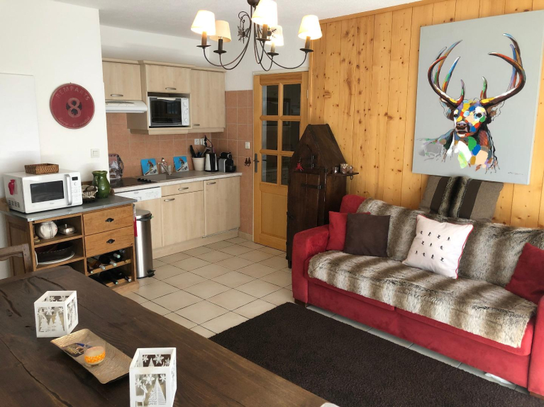 Idealmente situado cerca de las pistas, cerca de todos los servicios, con guardaesquís. Apreciado por su comodidad, su ubicación y su exposición al sur.WIFI