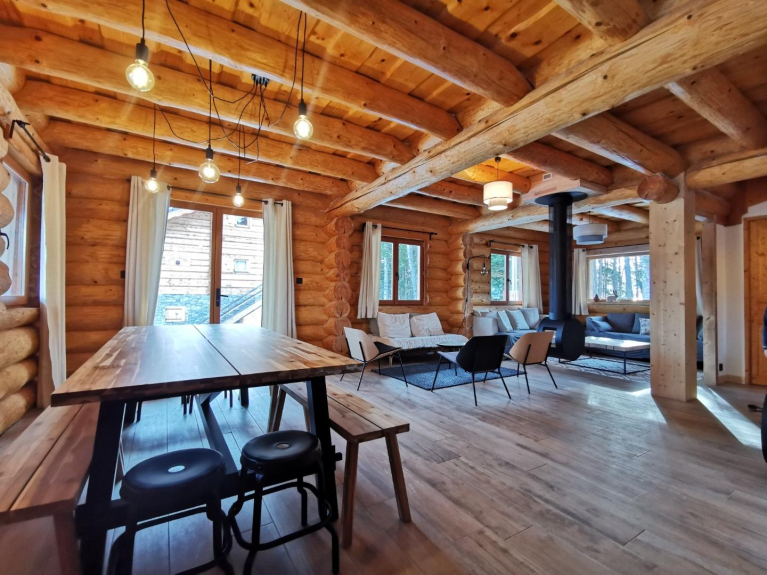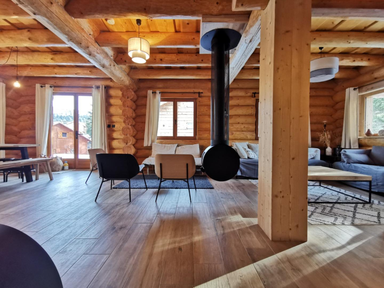 A A sólo 500 m del inicio de las pistas, este auténtico chalet de 4 estrellas tiene capacidad para 12 personas y está pensado para familias con un máximo de 6 adultos y 6 niños.