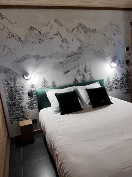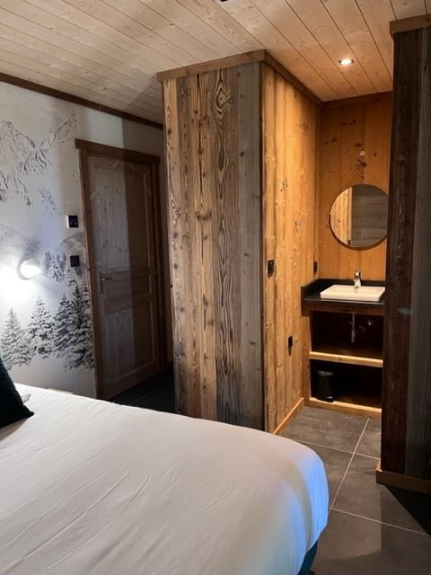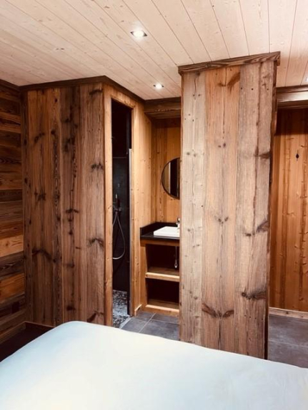 - La suite "Montaña" con ropa de cama TRECA de alta gama 160 con cuarto de baño (ducha y lavabo), armarios.
