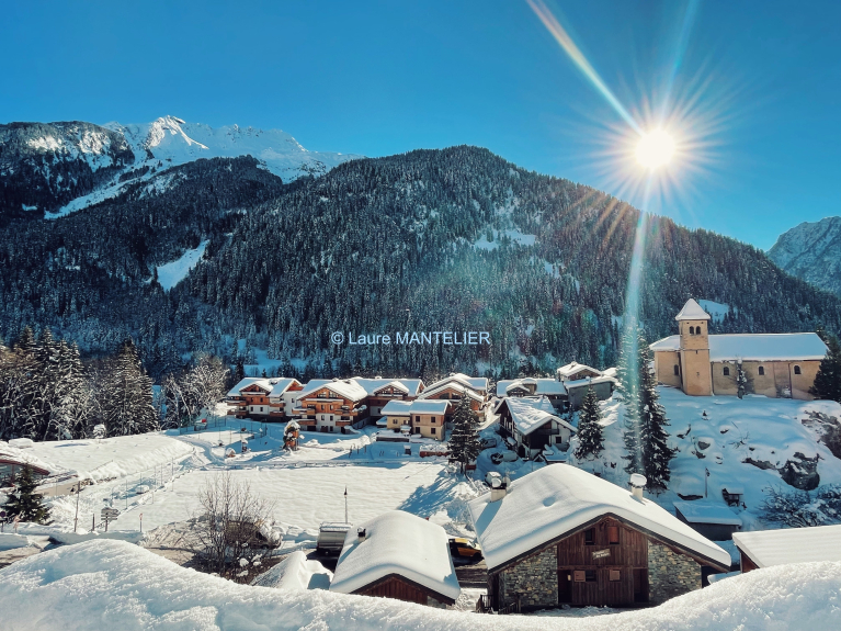 SITUACIÓN : situada cerca de la bonita iglesia barroca de Champagny - A 7 minutos a pie del centro del pueblo y de los comercios (corto camino peatonal cuesta arriba) - Parque infantil y piscina/spa del pueblo a los pies de la residencia - Acceso a las escuelas de esquí, a las pistas y a los remontes mecánicos a 600 metros (2 minutos en autobús gratuito: parada a 50 metros) - Pistas de tenis a 2 minutos a pie