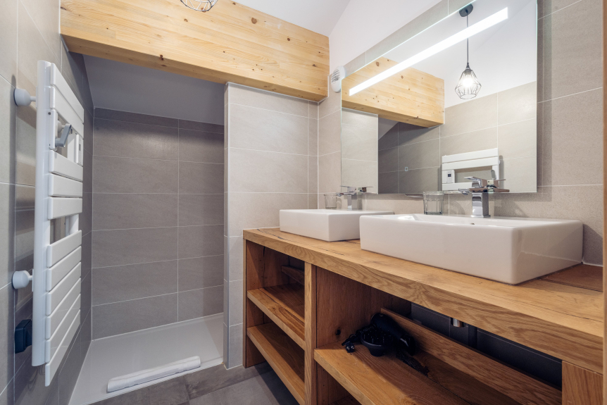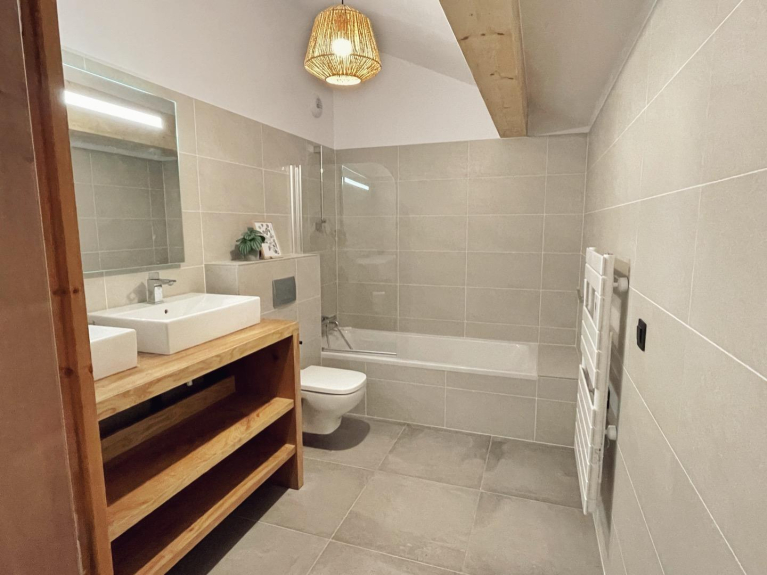 - Cuarto de baño separado: lavabo doble, ducha, secador de pelo + 1 WC separado