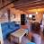 Amplia sala de estar con cocina americana, comedor, salón con estufa de leña, sofá cama.