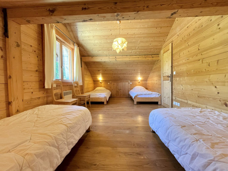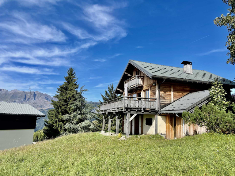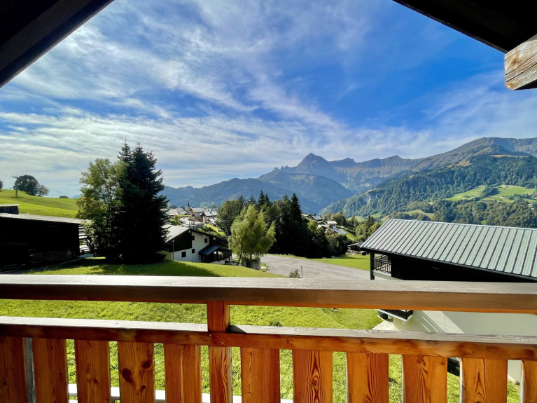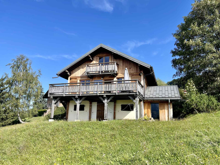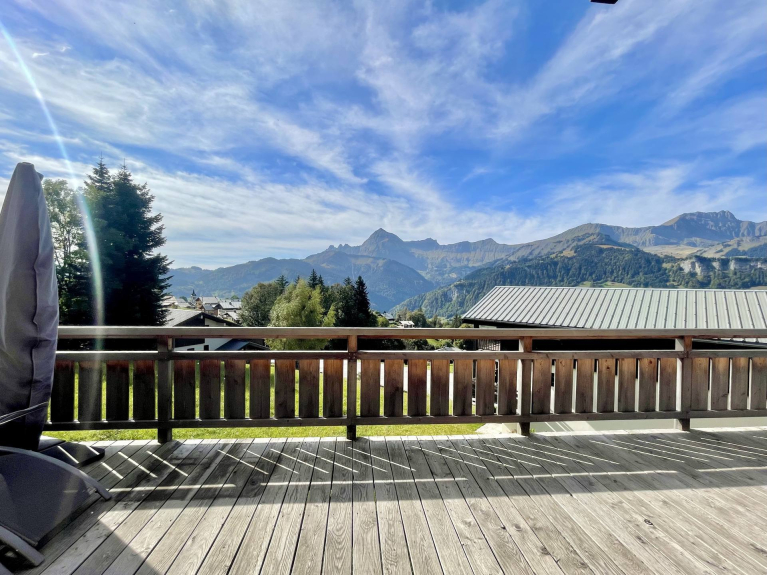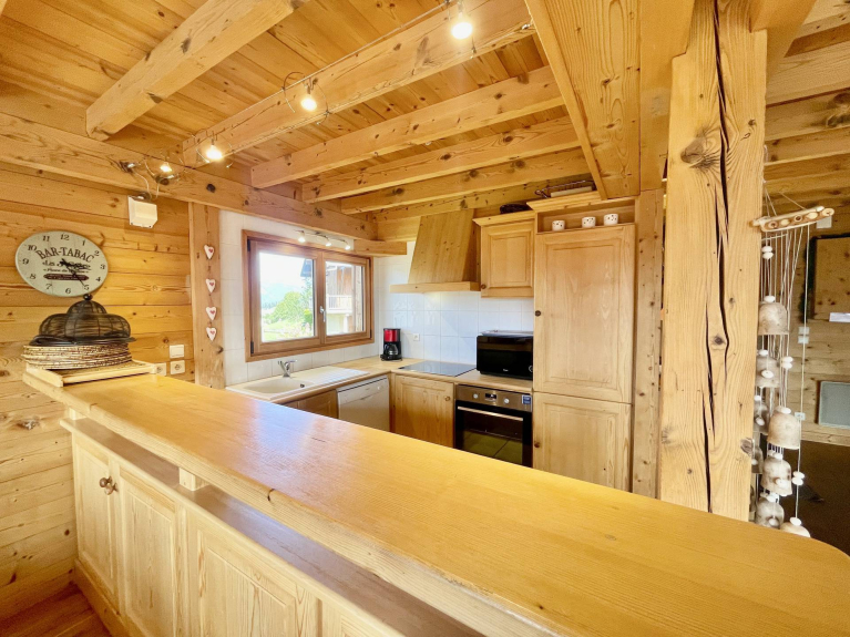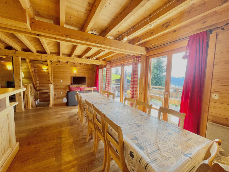 Chalet para 16 personas con una superficie de 170m² repartidos en tres plantas. Apreciará sus dos balcones y su terraza suroeste que ofrece una vista excepcional del macizo de Aravis, del Mont Charvin y del valle.