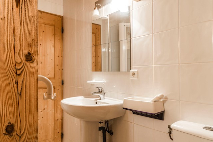 *PISO JARDÍN: hall de entrada que puede utilizarse como sala de esquí, dos dormitorios dobles (2x140), un dormitorio doble en suite con ducha (cama 140), 1 dormitorio con 2 camas individuales y literas (4x90), baño con ducha y aseos.
