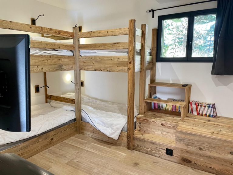 Le Clan des Loups es un chalet luminoso y cálido en el que podrá sentirse tanto solo como rodeado de amigos y familiares. Además de un gran salón, dispone de 12 camas en 5 habitaciones (4 habitaciones con camas dobles, 1 habitación con 4 camas individuales). Dos habitaciones (en la planta superior) tienen un cuarto de ducha privado con aseo, tres habitaciones (en la planta inferior) tienen acceso a un gran cuarto de baño con ducha y bañera. Dos salas están equipadas para el teletrabajo (conexión de fibra + Wifi).