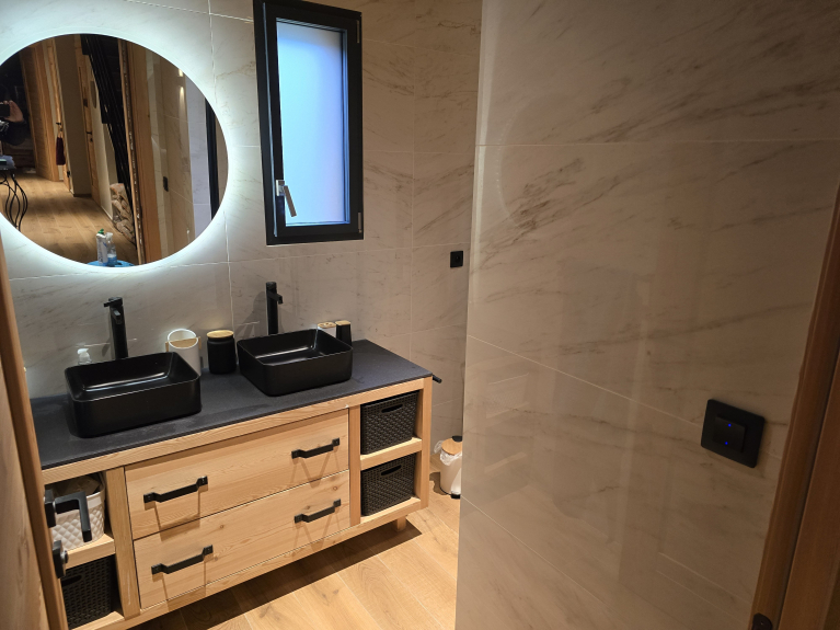 - 1 baño con ducha italiana y 2 lavabos + calentador de toallas