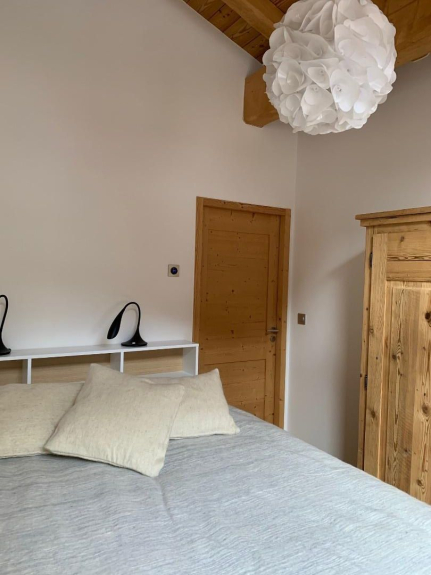 chalet reciente, contemporáneo, situado a 1 km de las pistas y de la pista de esquí, lanzadera gratuita delante del chalet (acceso esquí a pie a 500 m, esquí Lance Gralette, regreso esquí a pie posible por pista negra Combe des Pariettes)