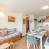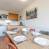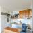 - Una zona de cocina totalmente equipada con placa de inducción, nevera-congelador, horno, microondas, lavavajillas.