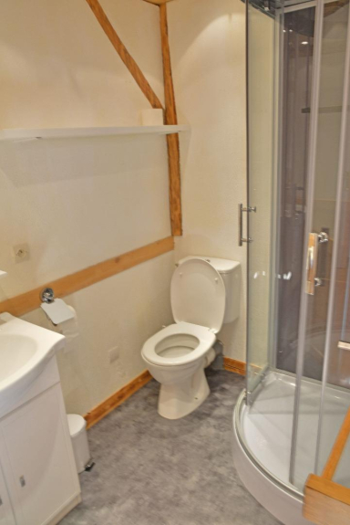 1 pequeño cuarto de baño con cabina de ducha, WC y lavabo (a compartir con otras 2 habitaciones: 4 y 5).