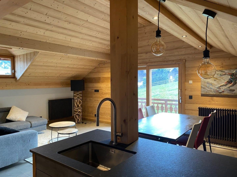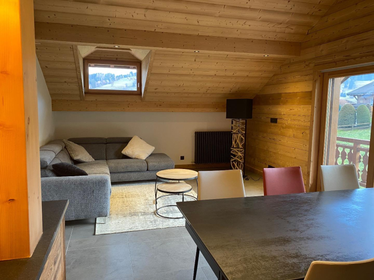 Acogedor apartamento en un chalet con hermosas vistas al macizo del Mont Blanc, con capacidad para 6 personas.