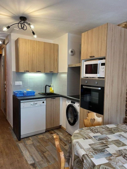 Piso con bonita vista situado por encima de los comercios, restaurantes y FSE, y cerca de la guardería, equipado y amueblado (ropa de cama* - ropa de cama*, teléfono*, - equipamiento para bebés - tostadora y cafetera - productos para el hogar* )