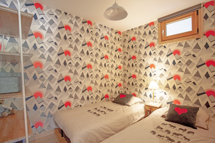 Amplio rincón de montaña con 2 sofás individuales de 90*190 BZ (posibilidad de hacer una cama doble), edredones, mesilla de noche con lámpara de cabecera, estantes de almacenamiento, perchero. Esta esquina de montaña tiene una ventana que da a la sala de estar para permitir que la luz natural en el segundo día y la ventilación. Persiana oscurecedora.