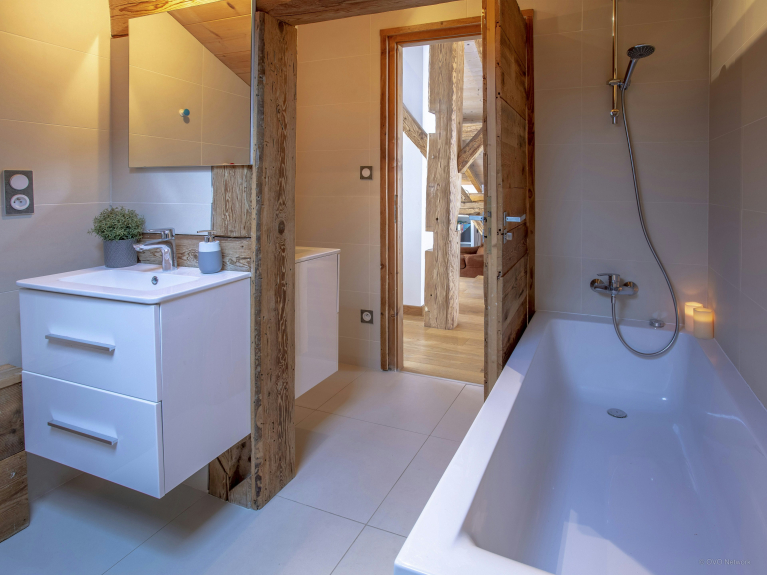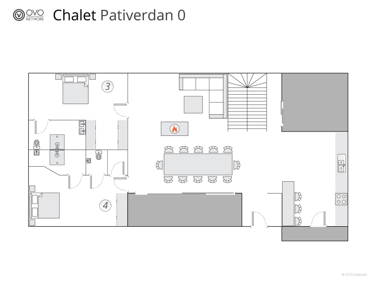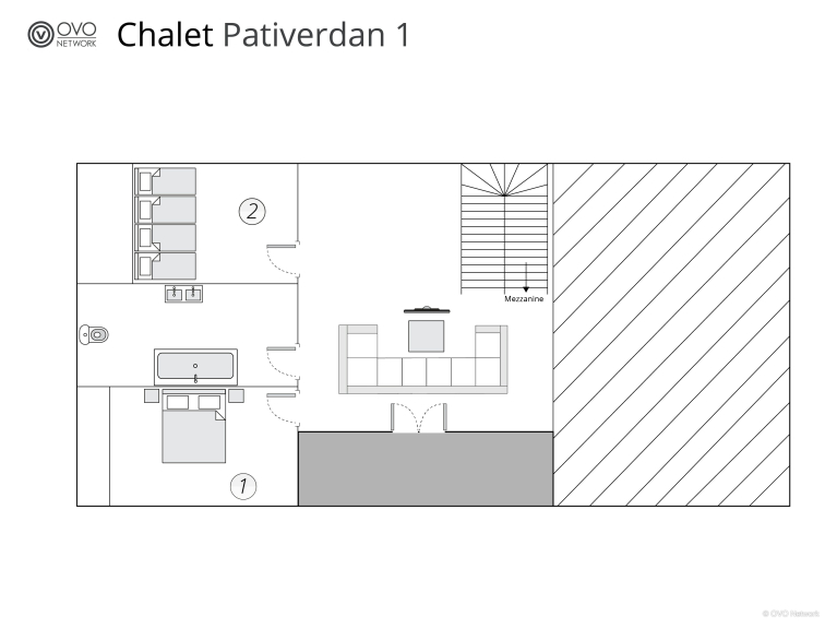 Chalet Pativerdan tiene cuatro dormitorios - dos dobles en la planta baja, y en la planta superior se encuentra una doble y una doble con capacidad para cuatro personas. Ambas habitaciones comparten un cuarto de baño y las camas pueden disponerse como dobles o gemelas, por lo que hay sitio para todas las situaciones. También hay una sala de juegos con TV en el entresuelo, por lo que es ideal para familias. También hay un sofá cama en la sala de juegos por si necesitas más espacio para dormir.