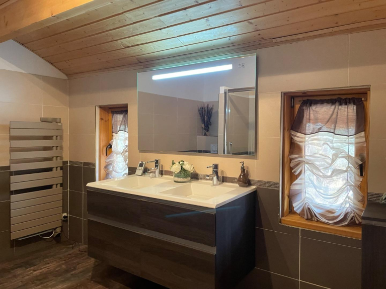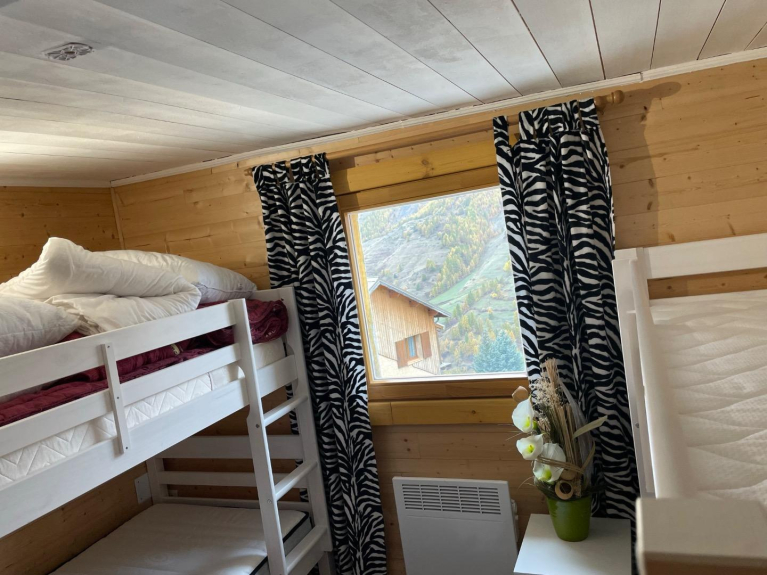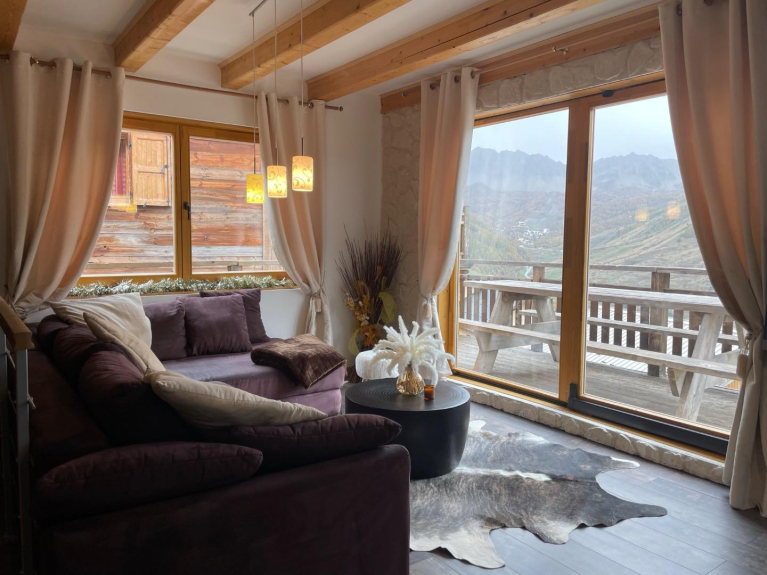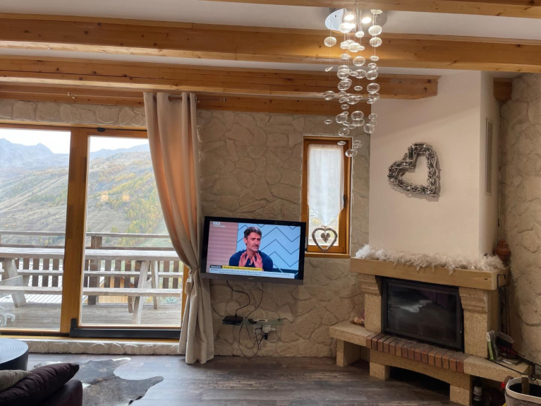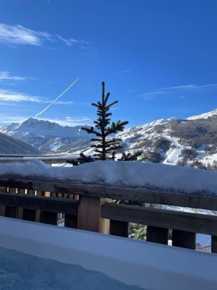 CHALET EN ALQUILER SEMANAL EN VARS Número de personas : 12 personas y más . Alquiler : 3500€ a 4000€ por semana dependiendo del periodo . Alquiler de chalet reciente, individual, confortable y cálido en los Hautes-Alpes en VARS STE CATHERINE a 1850 metros de altitud en el lado más soleado del pueblo. El chalet tiene 145 metros cuadrados y garaje para 2 coches, lanzaderas gratuitas a 100 metros del chalet. Salón con chimenea (se ofrece leña) y TV, un sofá cama de 2 plazas, una cocina totalmente equipada (lavavajillas, horno, microondas, nevera, placa de inducción) y una terraza con vistas a la estación y a la pista olímpica con también un jacuzzi exterior. 2ª planta : 1er dormitorio : una cama doble, 2º dormitorio : una cama doble, 3er dormitorio : una cama doble, cuarto de baño con ducha italiana, WC y 2 lavabos. Bajo el salón, dos dormitorios con ducha y WC, incluyendo una cama doble y 2 literas para 4 personas.