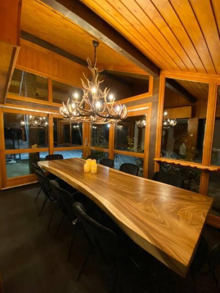 Salón comedor, cocina totalmente equipada, sala de esquí y sala de juegos.
