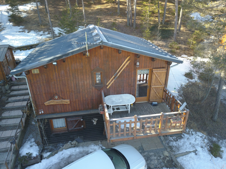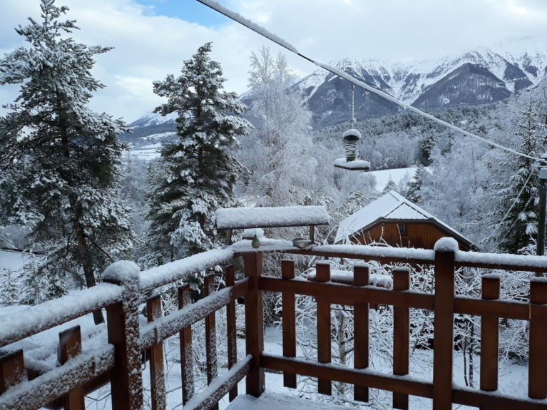 -Real chalet individual a 300 m de la estación de Grand Puy, gran terraza de 35 m2 en el bosque de pinos y balcón con vistas a la montaña, cómodo, tranquilo y muy bien equipado,