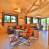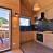 Arriba: una sala de estar con comedor y cocina americana totalmente equipada (nevera, congelador, cafetera de cápsulas Senseo, lavavajillas, máquina de raclette, etc.).