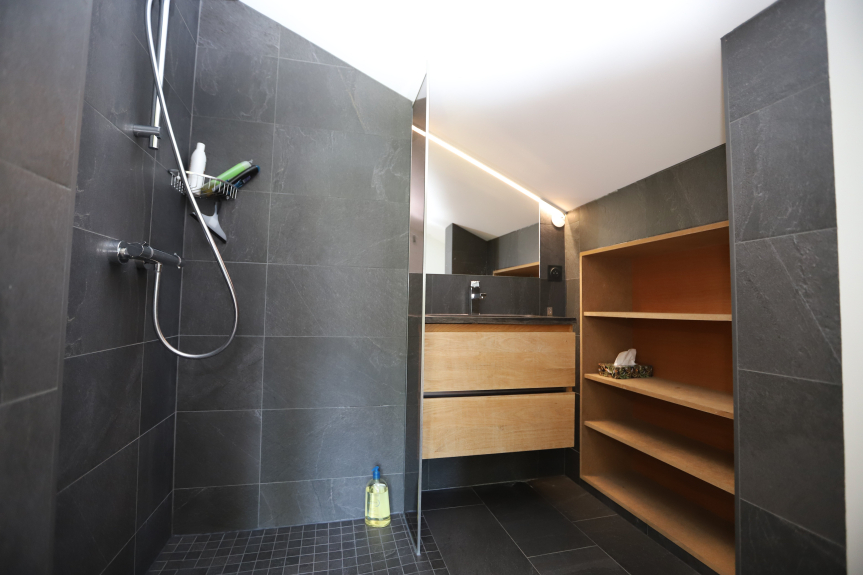 A la derecha, una suite familiar con un dormitorio independiente, 1 ducha y 1 zona de dormitorio con 2 camas nido