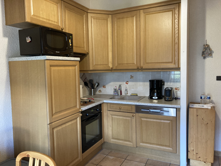 Equipado con un televisor de 127 cm, nevera, horno, microondas, lavavajillas, máquina de raclette, tostadora, cafetera y hervidor de agua.