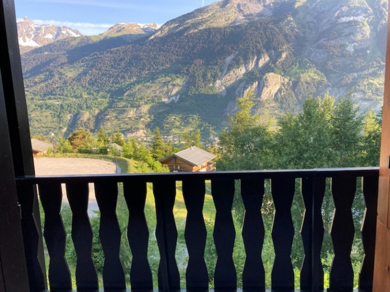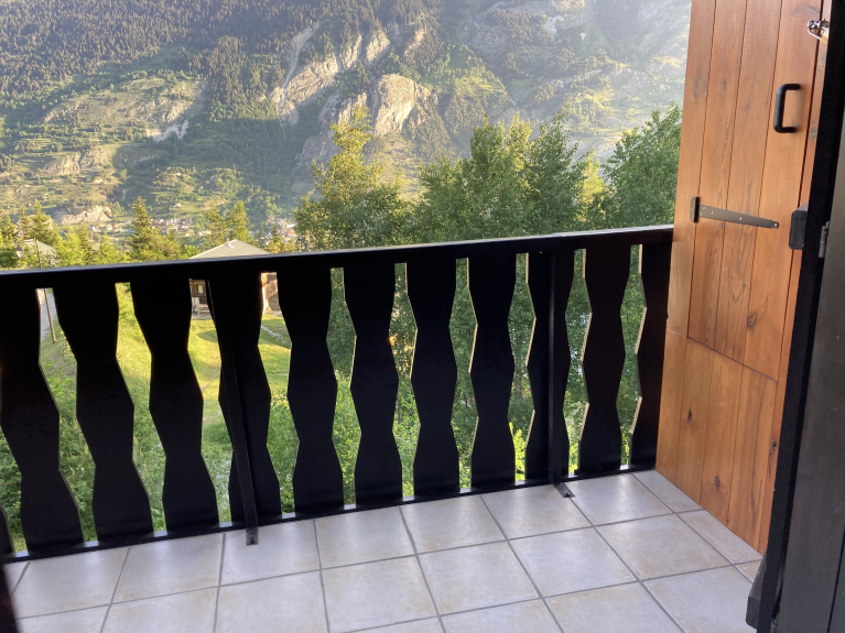 Un hall de entrada donde podrá dejar sus esquís y un balcón con vistas al Parque de la Vanoise