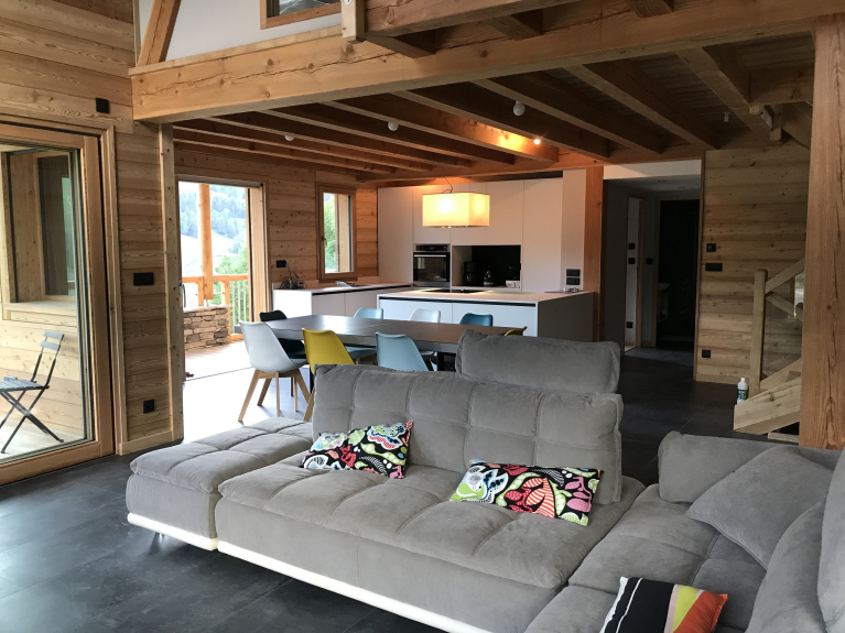 El chalet dispone de todas las comodidades: wifi, TV, consola de juegos y equipamiento, horno de vapor, vitrocerámica, microondas, cafetera clásica y exprés, lavavajillas, lavadora y secadora, nevera-congelador, raclette, fondue, pierrade y mucho más.