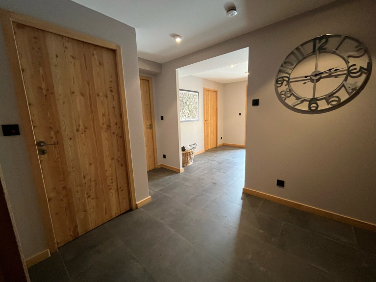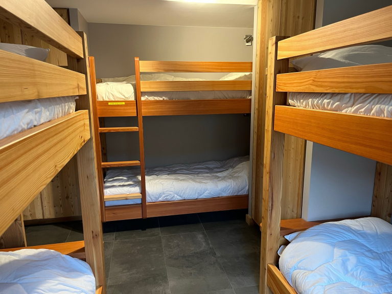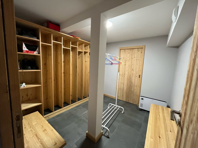 En el nivel 0, encontrará un garaje (1 coche) y una cochera para otros 2 vehículos. Al entrar en el chalet, encontrará un hall de entrada que conduce a un dormitorio de 6 camas, un cuarto de baño (bañera y ducha), un WC separado, una sala de esquí y una sala de lavandería (lavadora y secadora).