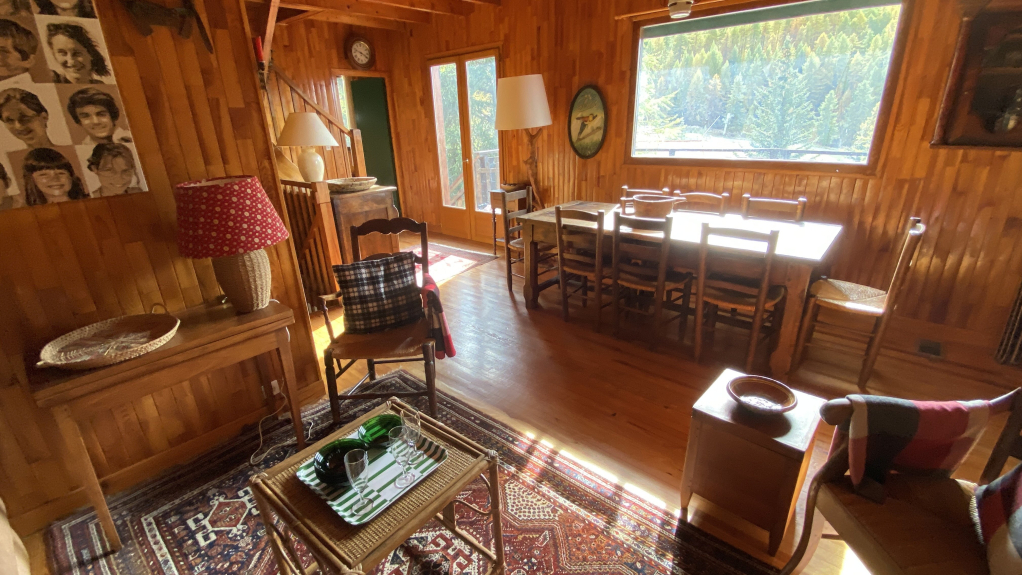 Encantador chalet familiar de los años 70, recientemente renovado, con una enorme terraza orientada al sur y magníficas vistas a las montañas de Briançonnais, situado a 100 metros del teleférico de Chalmettes y de la zona de prácticas de golf.