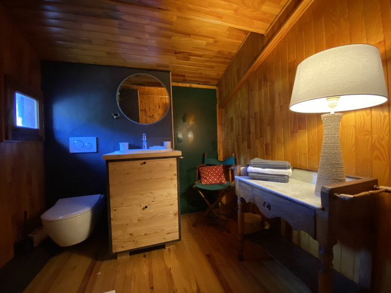 La decoración de madera de época del chalet es un viaje en el tiempo, realzado por todas las comodidades modernas: los cuartos de baño, las instalaciones sanitarias y la cocina se han renovado por completo.