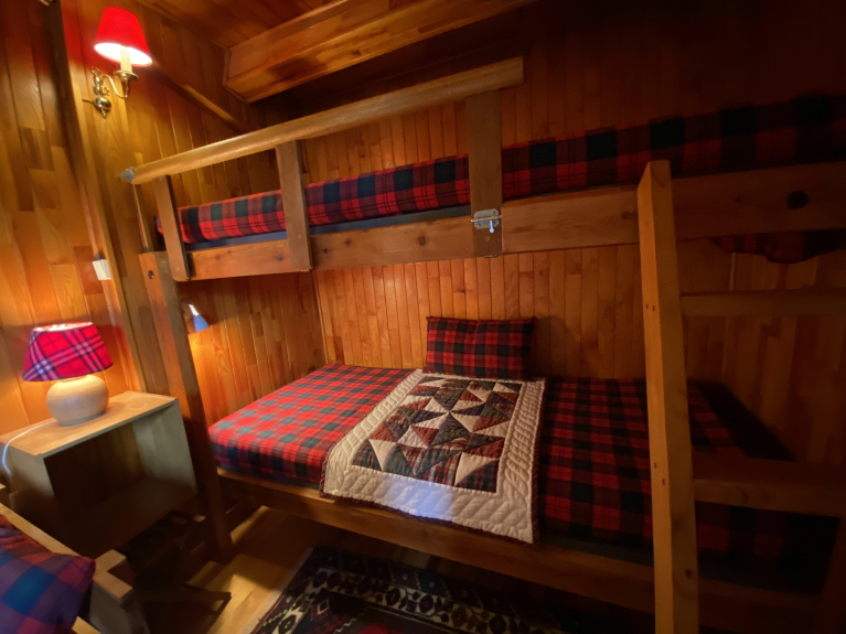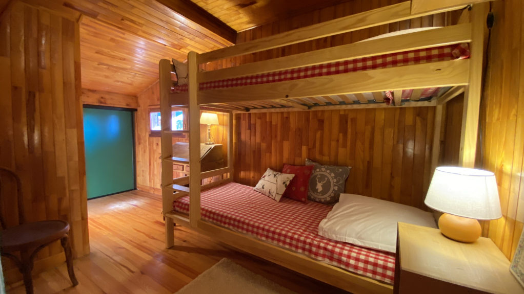 - Dormitorio 3 con una cama individual de 90 cm y dos literas de 90 cm.