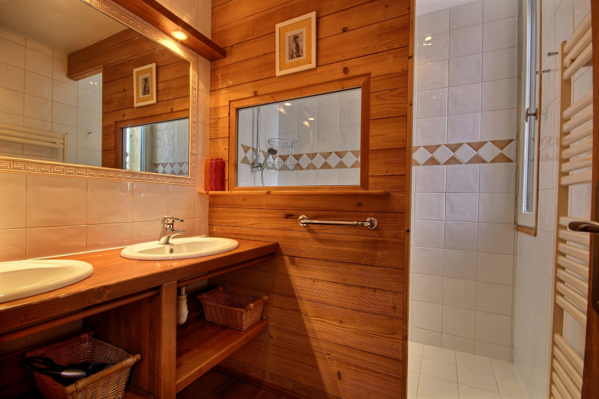 Dormitorio 1: suite principal con 2 camas individuales (90 x 200 cm) convertibles en cama doble (180 x 200 cm), cuarto de baño con ducha, WC separado