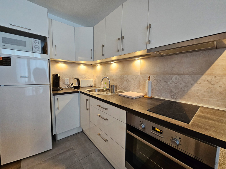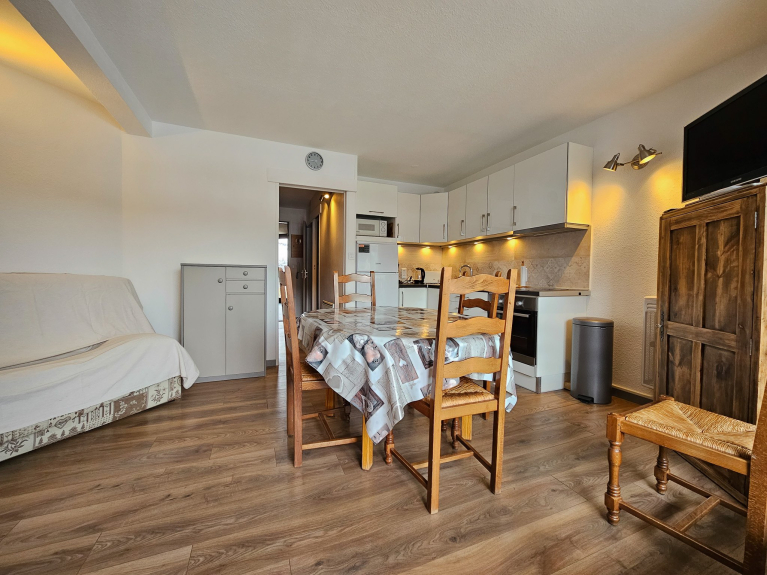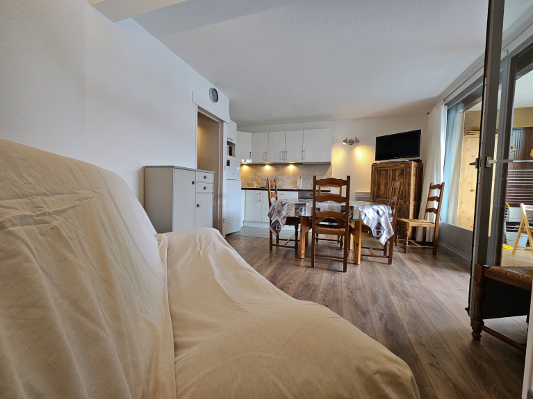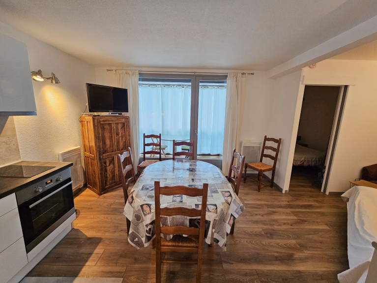 vestíbulo con zona de montaña, cuarto de ducha, wc, salón-cocina super equipada, dormitorio, veranda cerrada