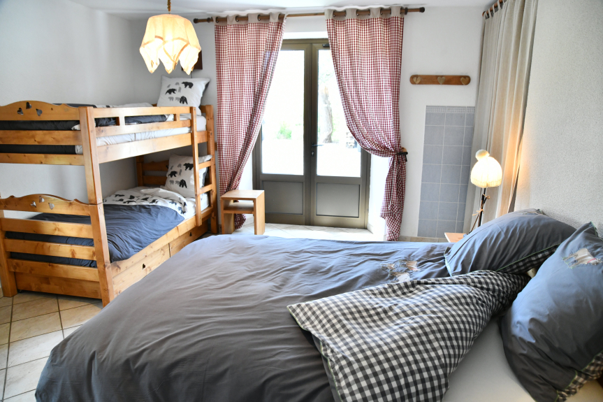 Antigua granja completamente renovada, este alojamiento ofrece mucho espacio y confort, ideal para unas vacaciones en familia o entre amigos. Dispone de 5 habitaciones espaciosas (3 camas dobles 160 X 200, 2 camas dobles 140x190 y 4 literas 90 X 200), con 1 cuarto de baño y WC en cada habitación.
