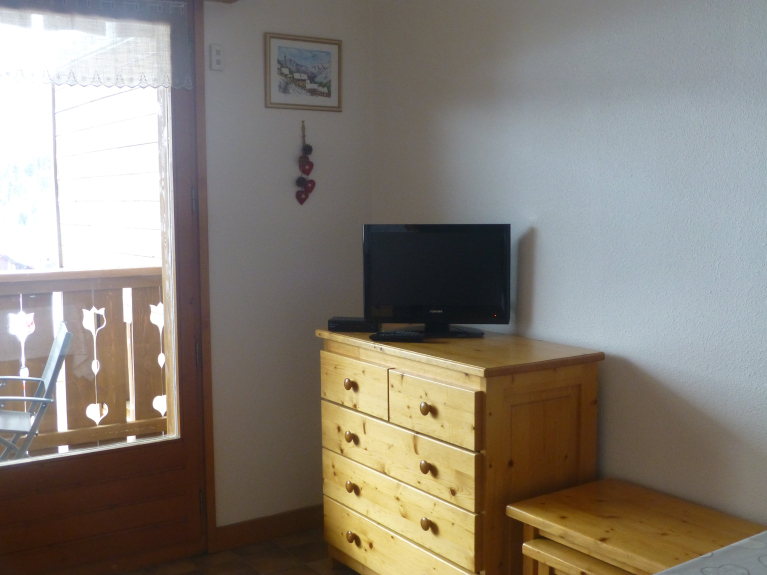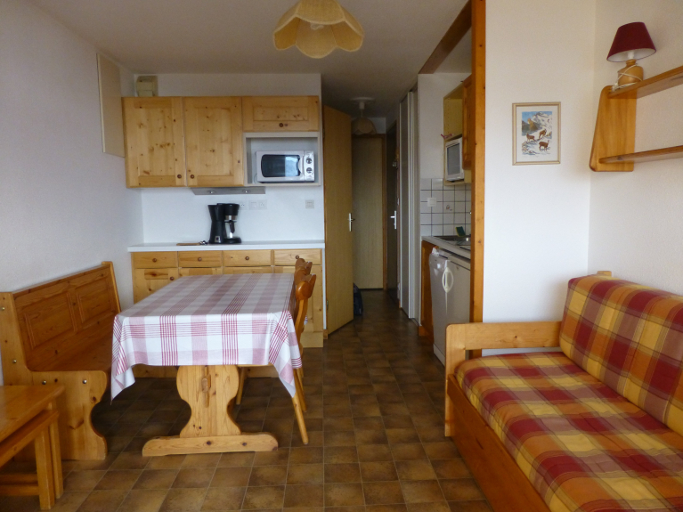 En el edificio Byblos, piso de 2 habitaciones para 4 personas, 25 m2, al pie de las pistas y del centro de la ciudad. Piso clasificado 2 estrellas.